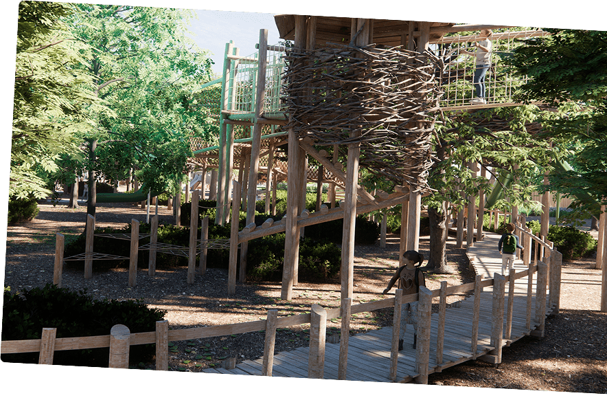 Designed with accessibility in mind, nest swings and wheelchair-friendly routes are woven in and around both the indoor and outdoor play areas. Lower-level, timber pathways take you past plenty of interactive learning stations for hands-on play and fun fact-finding.